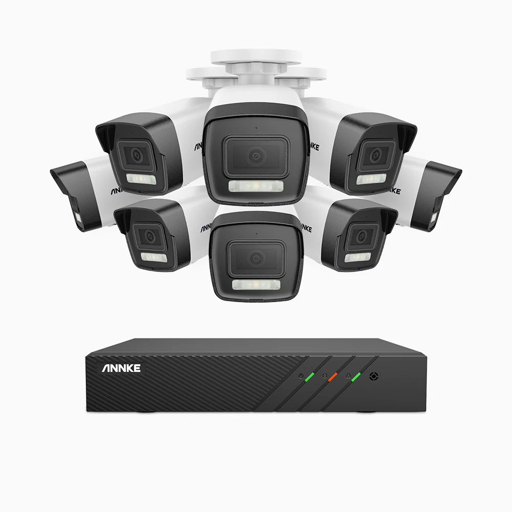 H500P 8 kanalų 3K PoE stebėjimo rinkinys su 8 kameromis – tai profesionali ir pilnai sukomplektuota vaizdo stebėjimo sistema, skirta didesnių teritorijų, verslo objektų ar gyvenamųjų namų apsaugai. Sistema užtikrina aukštą 3072 × 1728 (3K) skiriamąją gebą, spalvotą ir infraraudonųjų spindulių naktinį matymą bei pažangų žmogaus ir transporto priemonės aptikimą. Dėl F/1.6 diafragmos (0,005 liuksų jautrumo), įmontuoto mikrofono ir IP67 atsparumo klasės tai patikimas sprendimas 24/7 stebėjimui.