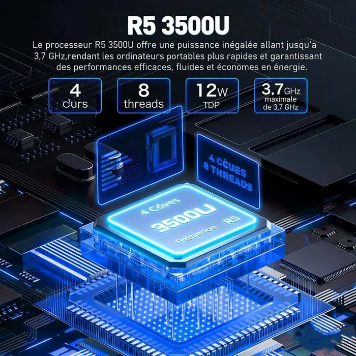 Galingas AMD Ryzen 5 3500U procesorius su 4 branduoliais ir 8 gijomis (iki 3,7 GHz, 15 W) kartu su 16 GB RAM užtikrina sklandų multitaskingą, greitą programų veikimą ir efektyvų energijos naudojimą. Talpi 512 GB SSD atmintis leidžia saugoti didelius failus ir užtikrina greitą sistemos paleidimą bei duomenų prieigą.